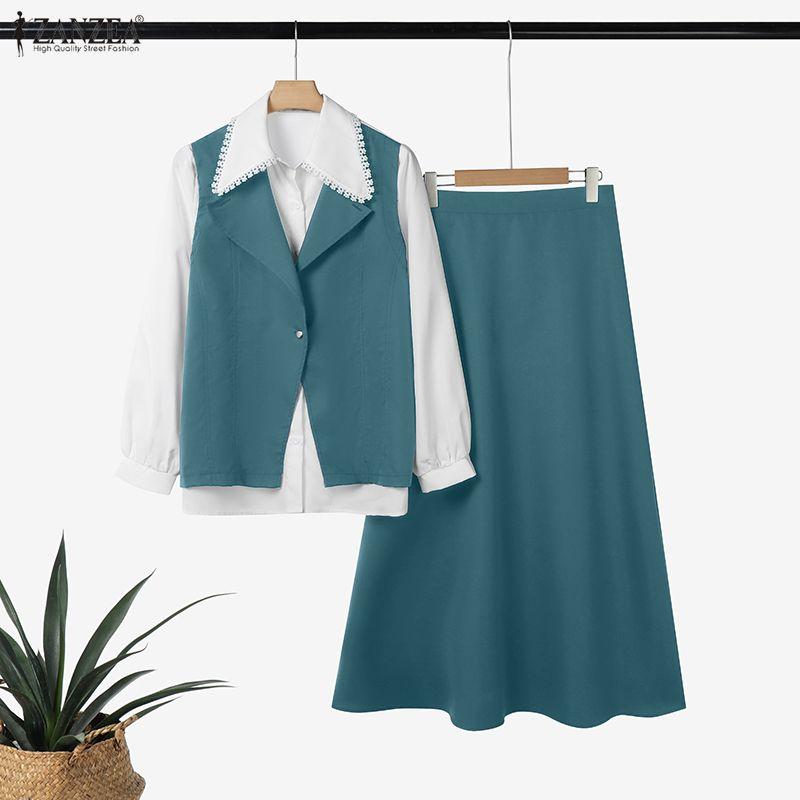 ZANZEA Женская блузка с длинным рукавом в стиле пэчворк и длинная юбка, повседневные костюмы-двойки