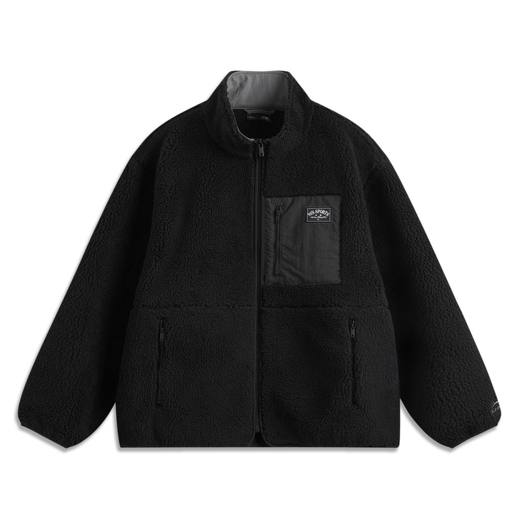 Li Ning Sports Fashion Series American Vintage Casual Simple Universal ветрозащитная свободная флисовая куртка унисекс черная AFDUC95-8