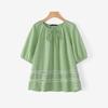 Блузка пошита из натурального жатого материала, скорее всего это вискоза, лёгкая, тоненькая, не тянется, в жару будет отлично.