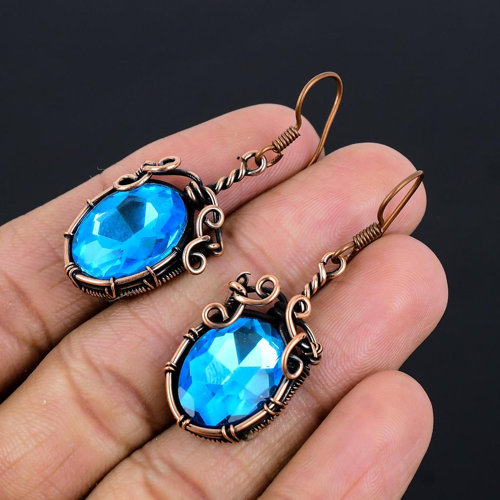 Серьги с голубым топазом, Ювелирные изделия из драгоценных камней, обернутые медной проволокой 999 пробы, Серьги ручной работы, На День благодарения