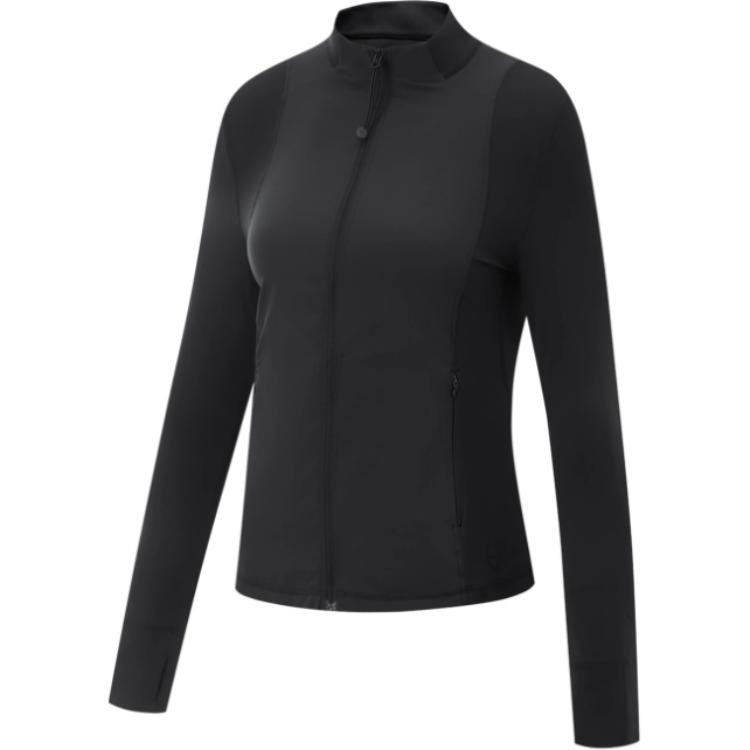 Женский топ для тренировок Li Ning Fitness Series с воротником-стойкой, застежкой-молнией и длинными рукавами, однотонный, черный AFDU828-2