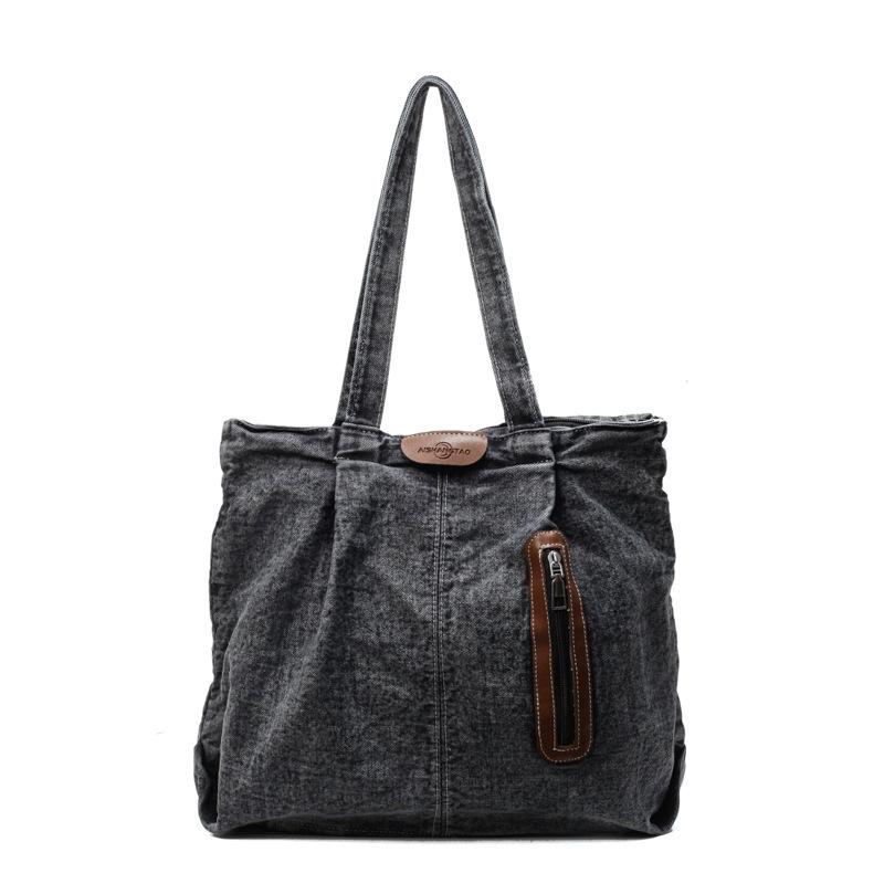 Винтажная джинсовая сумка-тоут, новая модная сумка-мессенджер большой вместимости, простая текстурная сумка на плечо.
