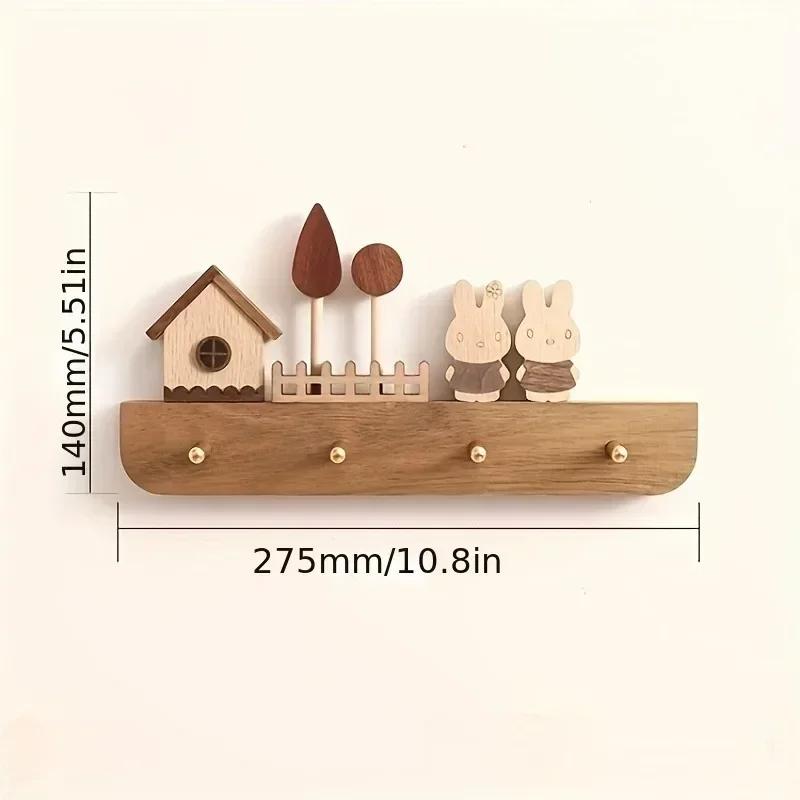 Набор деревянных крючков для ключей ручной работы с милыми фигурками кроликов - Настенный, Полированный и Стильный для Вашей прихожей