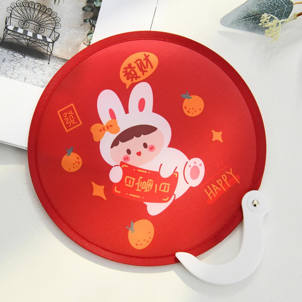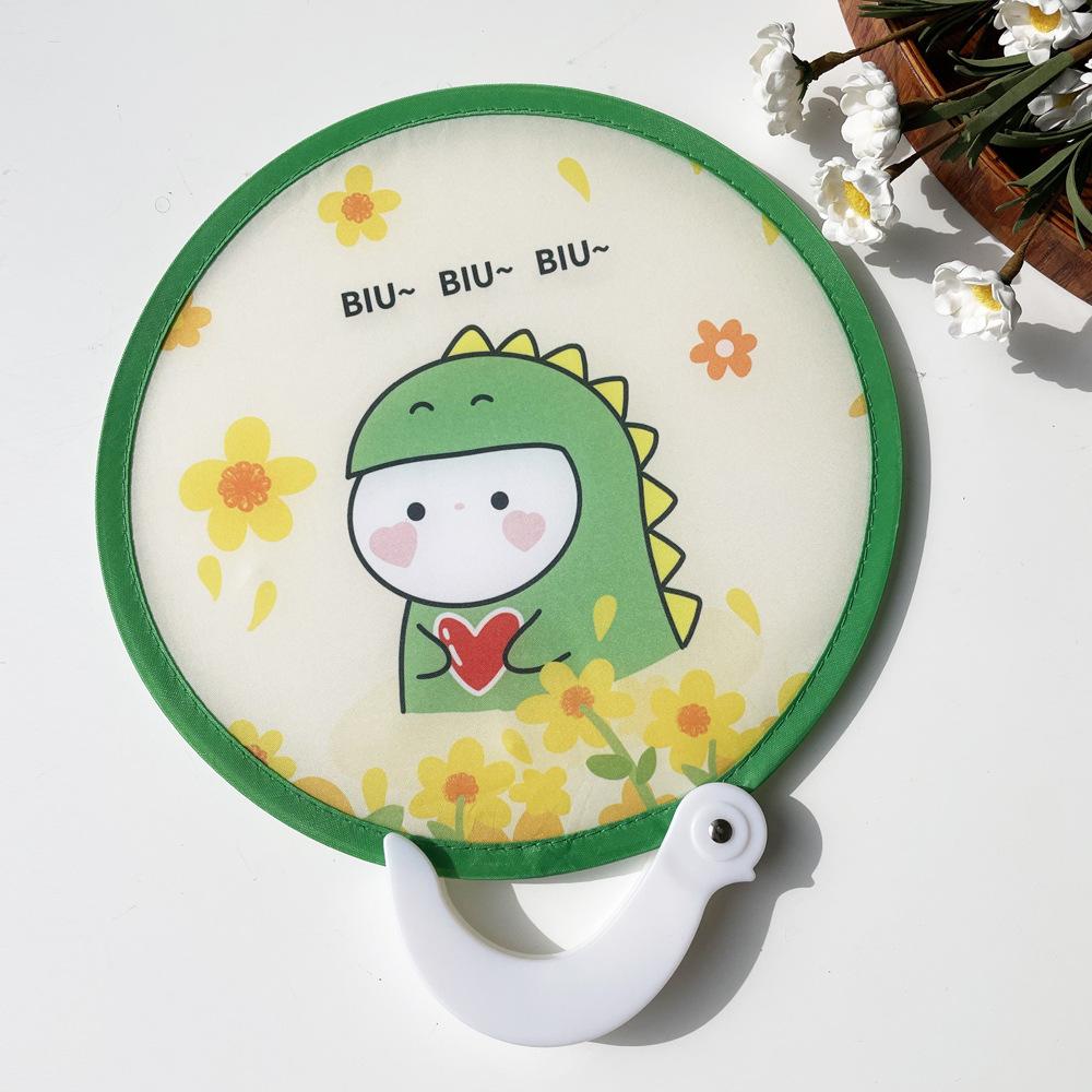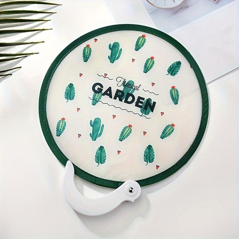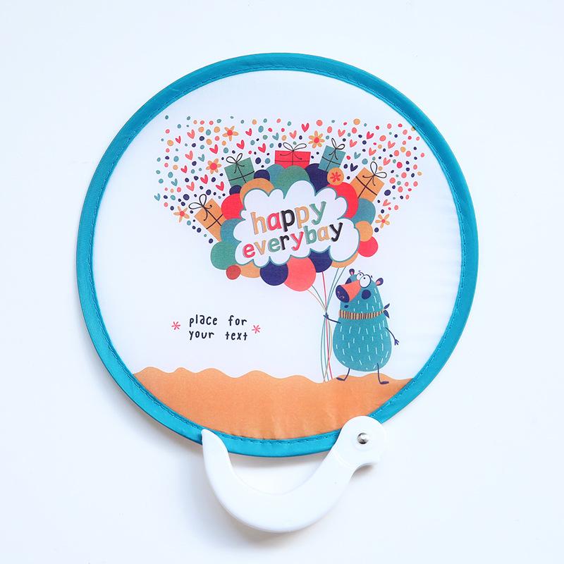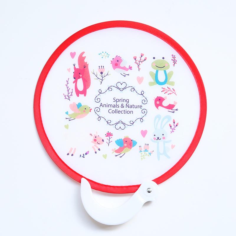 Портативный складной веер с ручкой, мультяшный мини-круглый веер, пластиковый летний аксессуар, необычный стиль для креативного подарка на вечеринку,