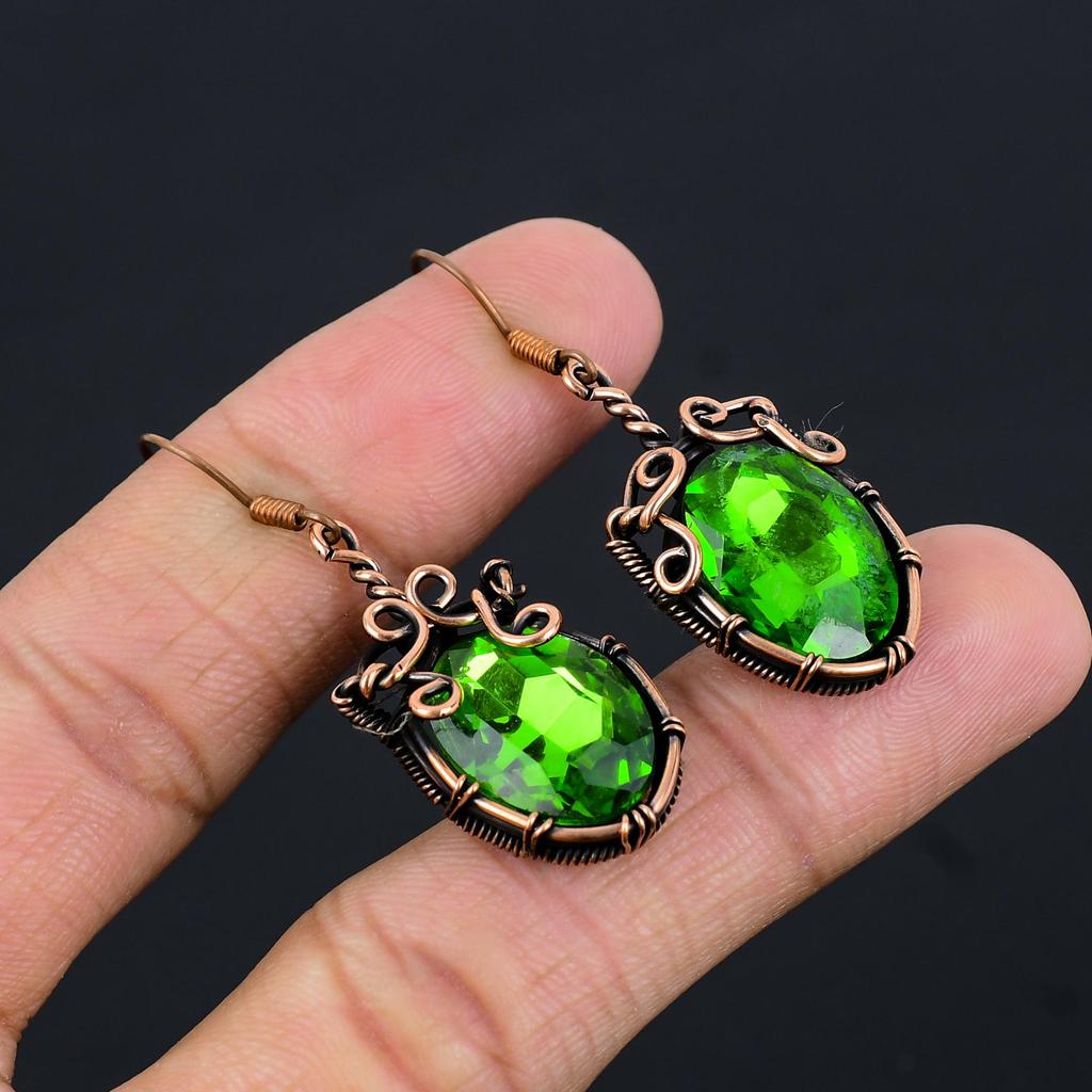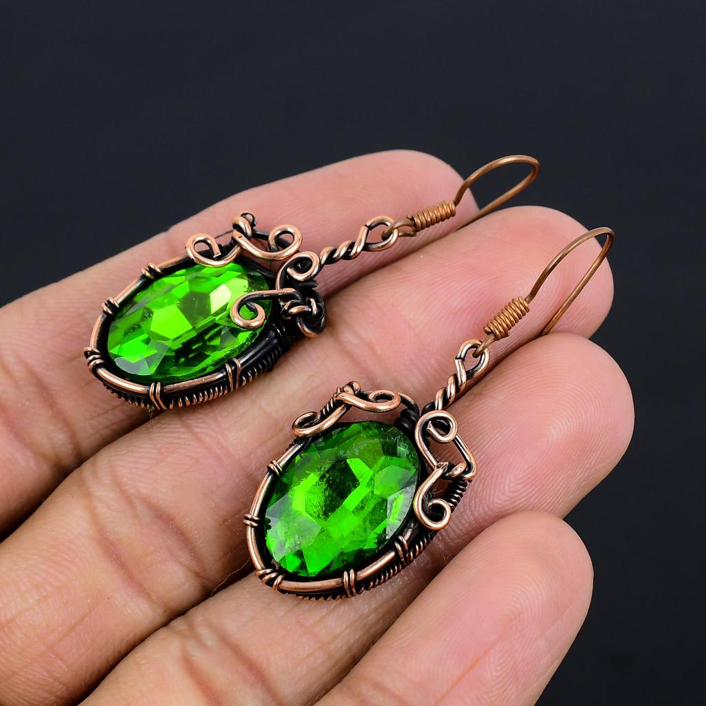 Серьги с перидотом, Ювелирные изделия с драгоценными камнями, Серьги, обернутые медной проволокой 999 пробы, Ювелирные изделия ручной работы, Серьги с камнем-талисманом, Подарок для него