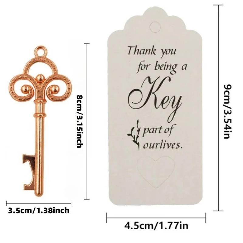 8 см, Большой, 50 шт./Набор, Открывалка для бутылок в виде скелетного ключа с биркой, веревкой. Подходит для свадебного подарка, подарков на вечеринку по случаю рождения ребенка