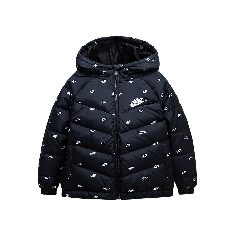 Nike Куртка-пуховик с капюшоном и принтом логотипа по всей поверхности, теплая, удобная, универсальная, детская, черная, NY2242055GS-001