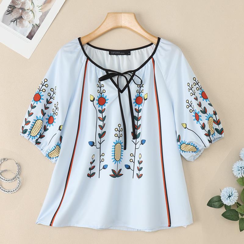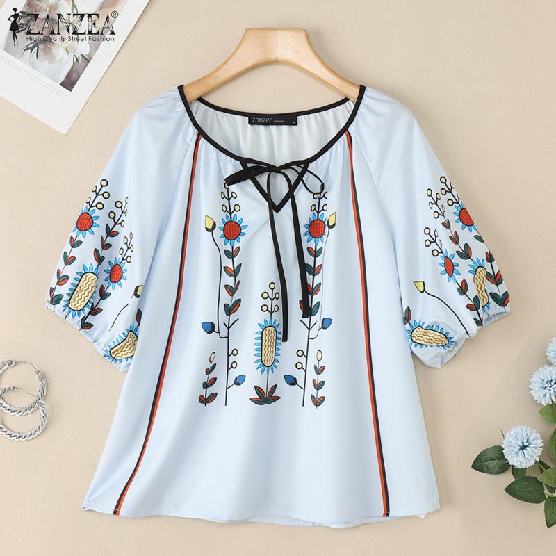 ZANZEA Женская повседневная блузка с круглым вырезом и рукавом 3/4 с принтом