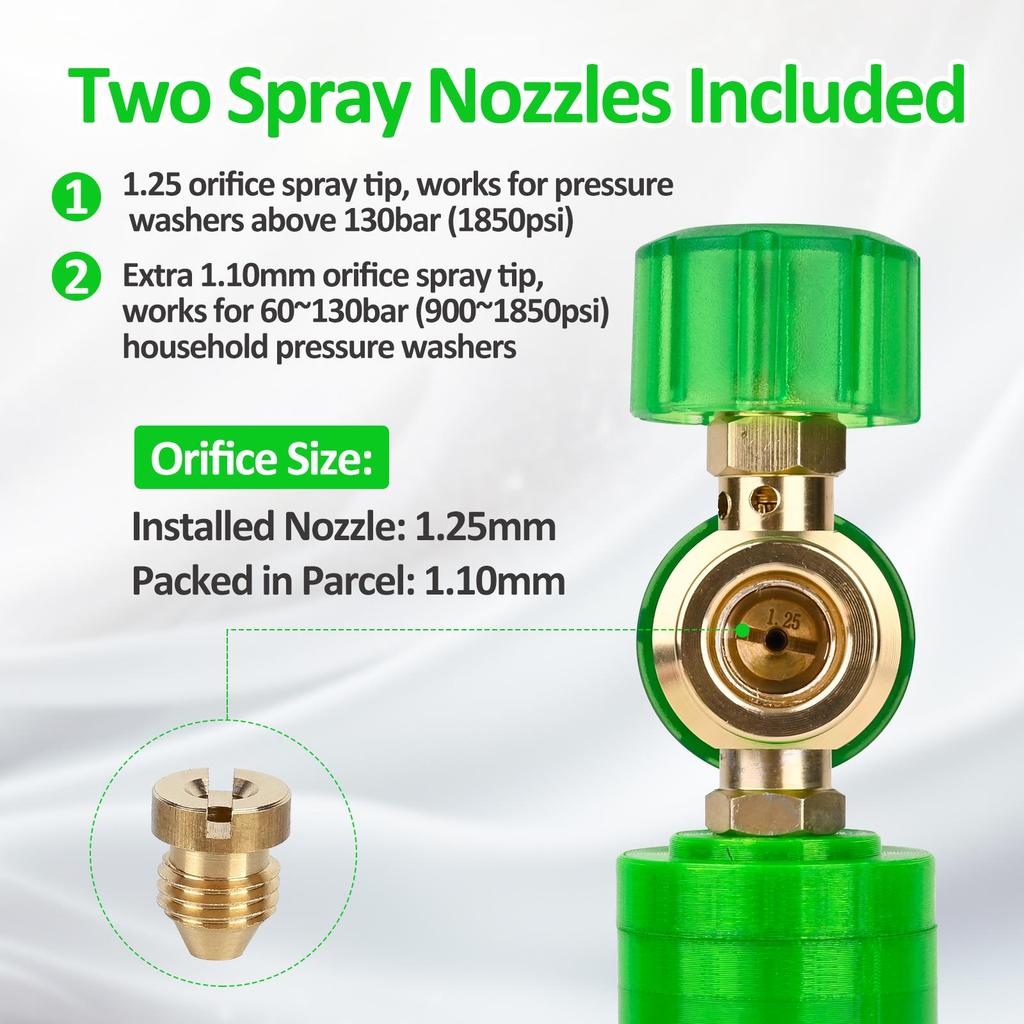 Сверхлегкий дизайн: Наша новая пенная насадка специально разработана для сверхлегкого использования. Просто добавьте раствор для автомойки и используйте его напрямую — разбавление водой не требуется. Это преимущество в весе не только делает продукт легким для переноски и эксплуатации, но и значительно снижает нагрузку на вас во время чистки вашего автомобиля.. Легкая конструкция обеспечивает длительный комфорт, позволяя вам наслаждаться эффективной уборкой, не беспокоясь о физической усталости.