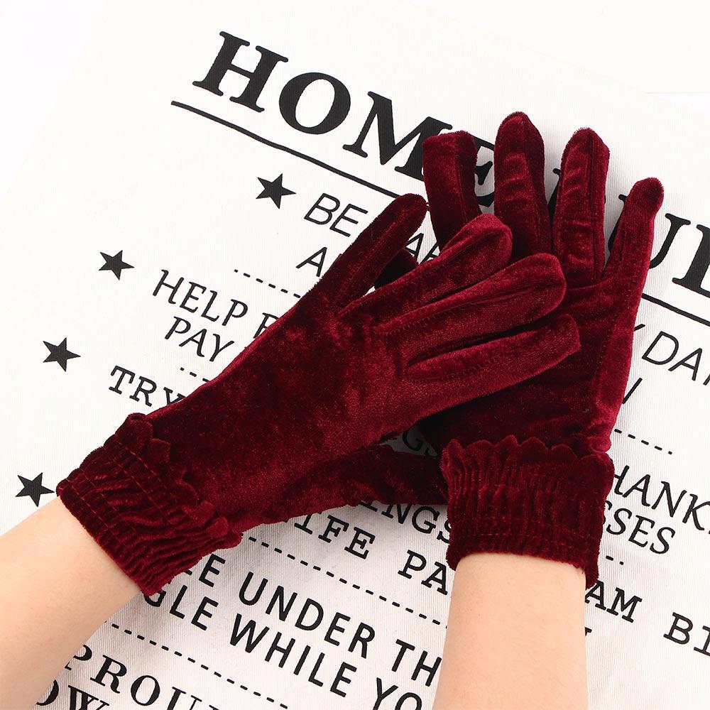 Велосипедные теплые женские осенние однотонные перчатки для вождения, перчатки из золотого бархата, эластичные варежки с полным пальцем