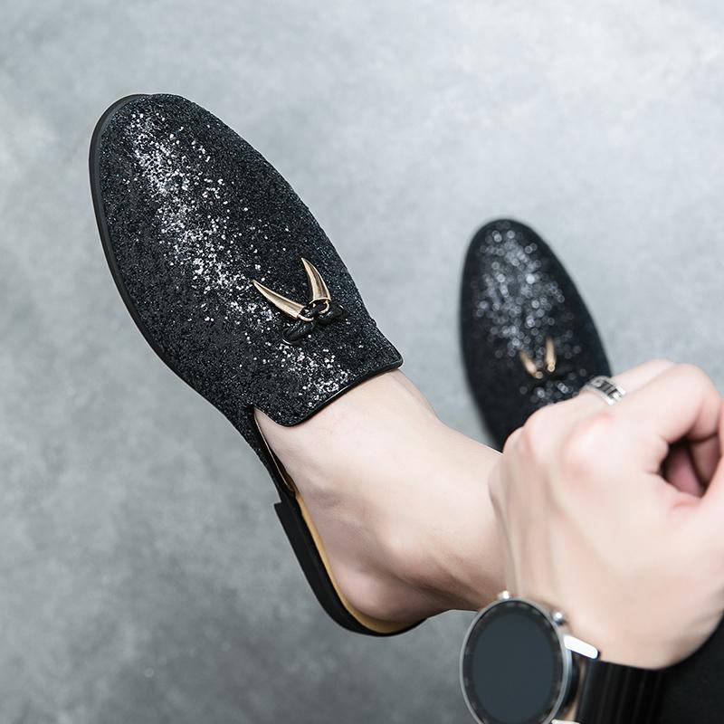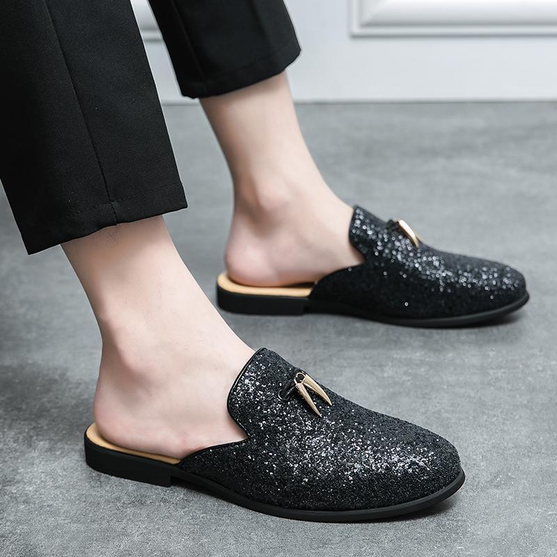 Модная мужская кожаная блестящая полушлепка Легкая модная повседневная обувь 2025 Новое поступление Обувь Мюли Дышащая Прохладная Мужская обувь