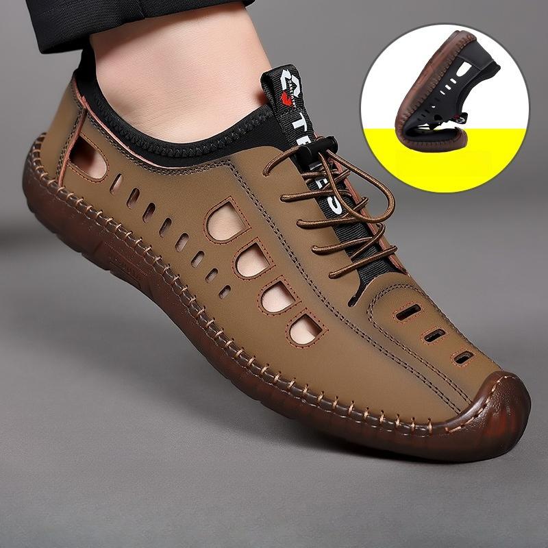 Мода 2025 Лето Мужские Сандалии с Перфорацией из Мягкой Кожи Ручной Работы Дышащая Повседневная Обувь Легкая Мягкая Подошва Удобная Обувь — купить товар онлайн с бесплатной доставкой по всему миру!