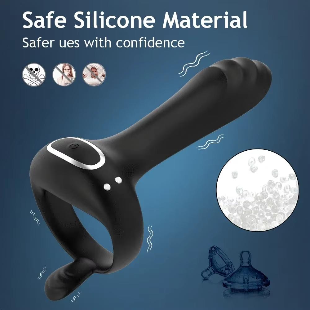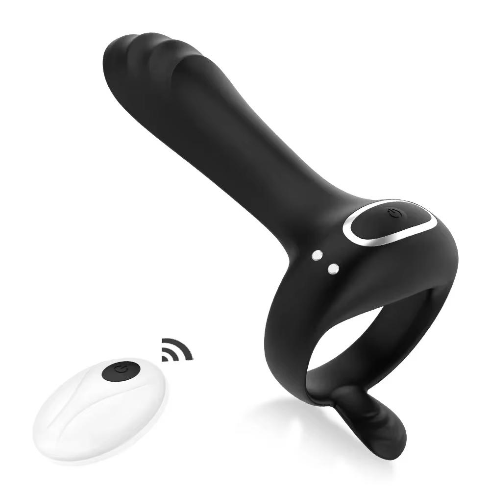 Вибрирующее кольцо на член Двойное кольцо на пенис с 9 режимами вибрации Пульт дистанционного управления G-точка Клиторальный стимулятор Вибратор Секс-игрушка для взрослых для мужчин и пар