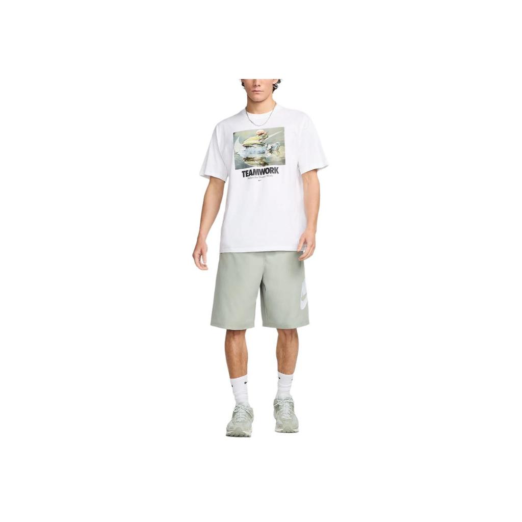 Nike Пуловер с принтом букв, футболка с коротким рукавом и круглым вырезом, мужские топы, белый HF0002-100