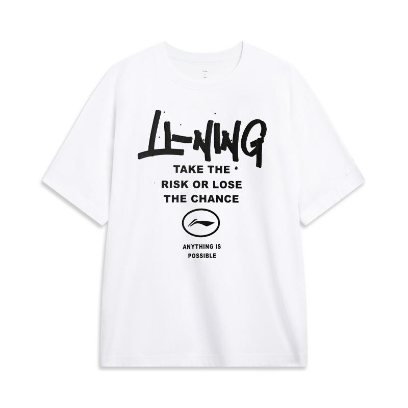 Li Ning Sports Fashion Series Printed Letter Round Neck Удобная дышащая свободная футболка с коротким рукавом для мужчин, топы белого цвета YHSU297-2 — купить товар онлайн с бесплатной доставкой по всему миру!