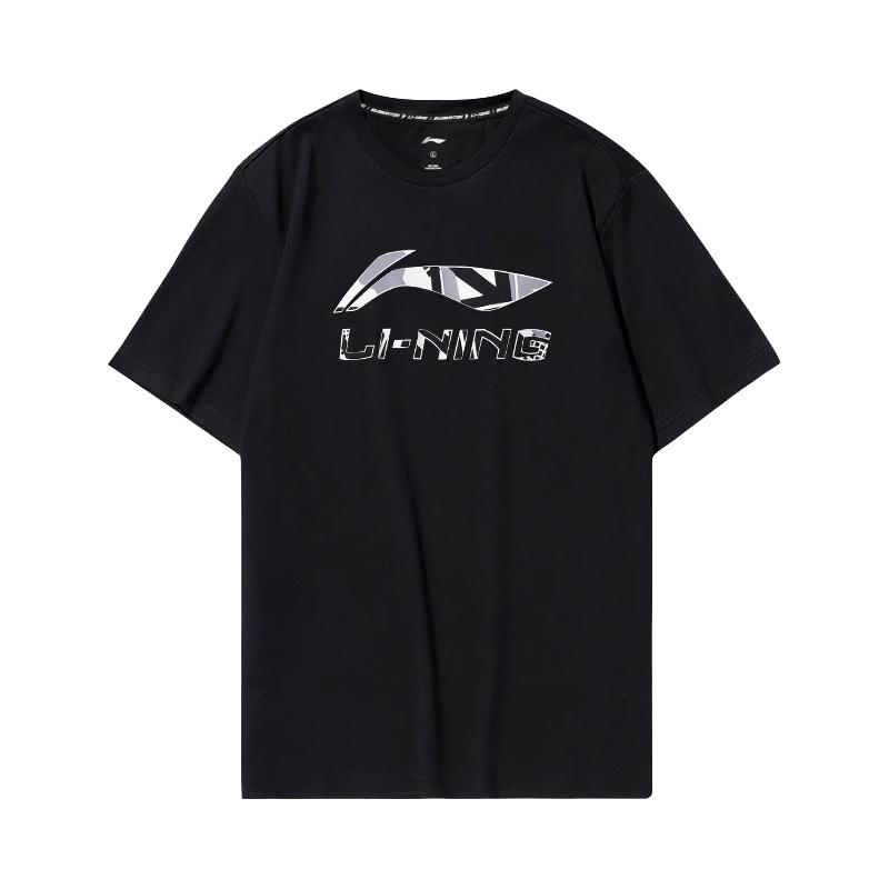Футболка свободного кроя с коротким рукавом и логотипом Li Ning, быстросохнущая, мужская, черная, AHSU975-1