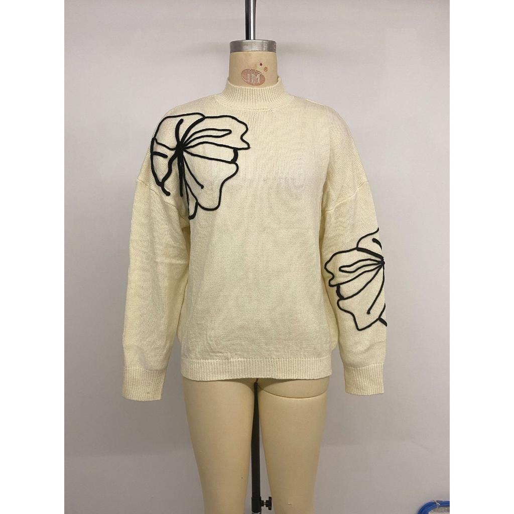 2025 Новый Осенне-Зимний Женский Свитер с Полувысоким Воротником, Цветочным Узором, Модный Пуловер для Женщин
