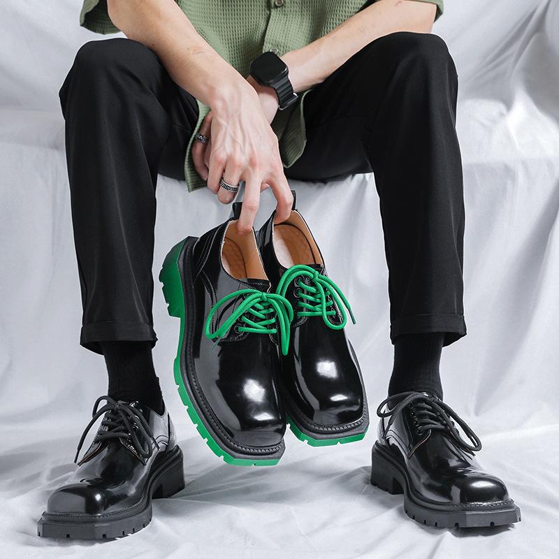Модные мужские зеленые туфли на высокой платформе с глянцевой кожей, мужские, Япония Харадзюку, корейский стритвир, новые деловые свадебные кожаные туфли