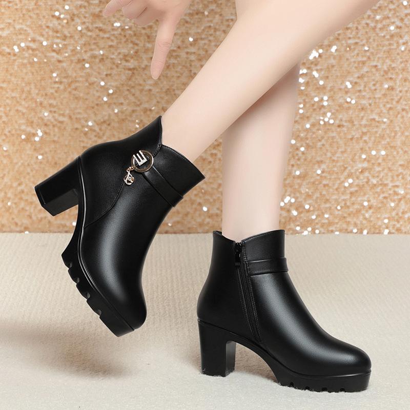 Модные женские осенне-зимние ботинки, повседневные ботильоны на платформе и высоком каблуке, женские ботильоны на толстой плюшевой подкладке с молнией, теплые зимние ботинки, модная хлопковая обувь