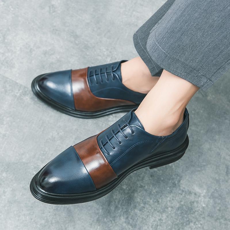 Модная мужская формальная обувь Коричневая Синяя Лоскутная Лакированная кожа Деловая Модная Обувь Дерби Свадебная Социальная Обувь Размеры 38-46 Мужская Обувь