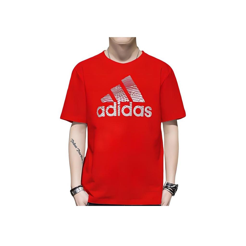 Adidas Футболка с логотипом алфавита, круглым вырезом и короткими рукавами, мужские топы, красные GL2401