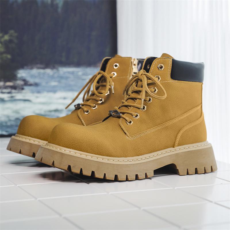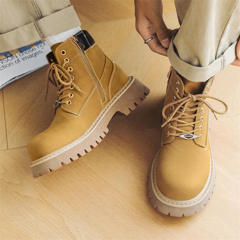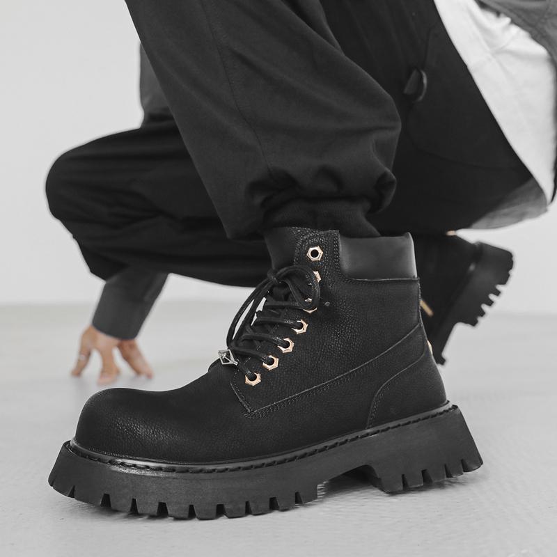 Мода Британский Стиль Мужская Мода Уличная Рабочая Обувь Бренд Натуральная Кожа Нескользящая Толстая Подошва Ботинки 2024 Повседневные Высокие Удобные Ботинки
