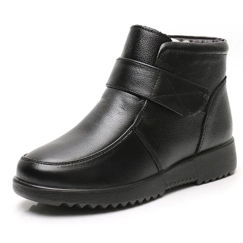 Модные женские ботильоны из натуральной кожи, зимние женские сапоги для снега, водонепроницаемые, нескользящие ботильоны, теплые танкетки, женские сапоги из натуральной шерсти