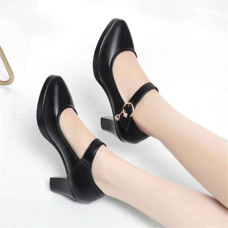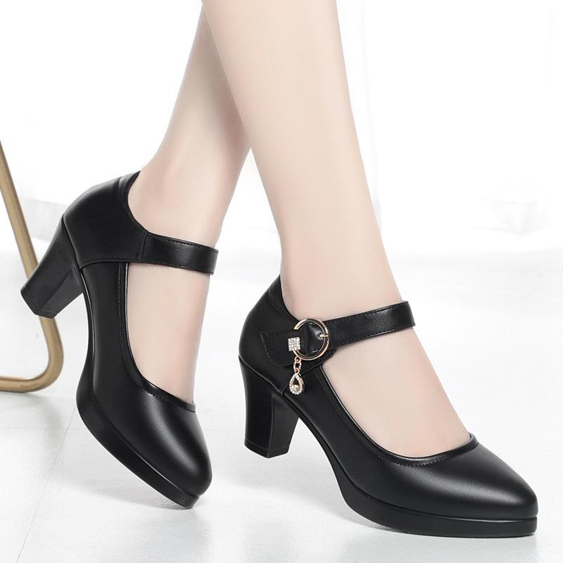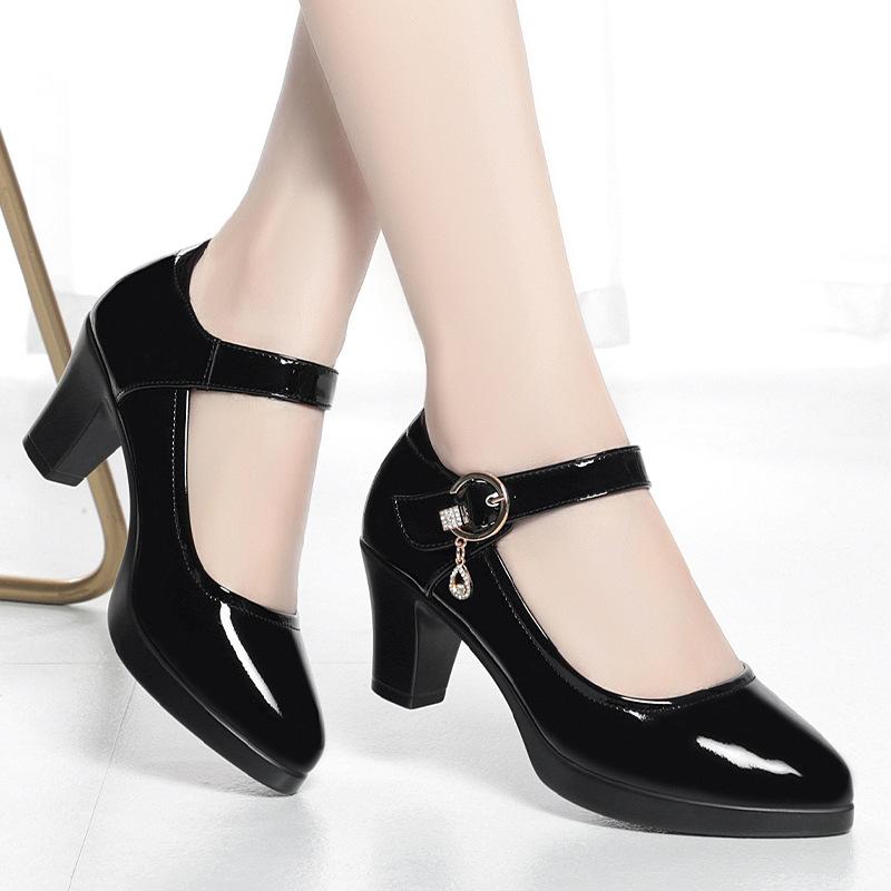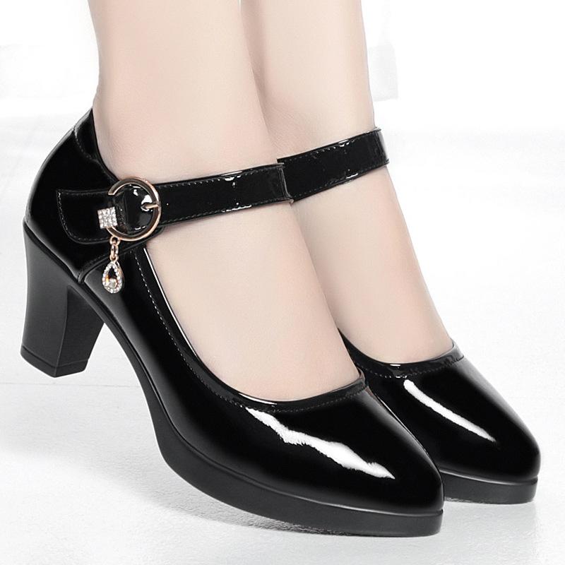 Модные туфли на толстом каблуке и платформе, женские туфли-лодочки 2024, черные Мэри Джейн, из мягкой кожи, на высоком каблуке, женские офисные туфли для вечеринки