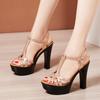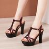 Мода 8см/10см/13см Женские Микрофибра Кожа Платформа Массивный Каблук Элегантные Сандалии Женские Сексуальные Высокие Каблуки Женские Летние Туфли для Платья Женщины
