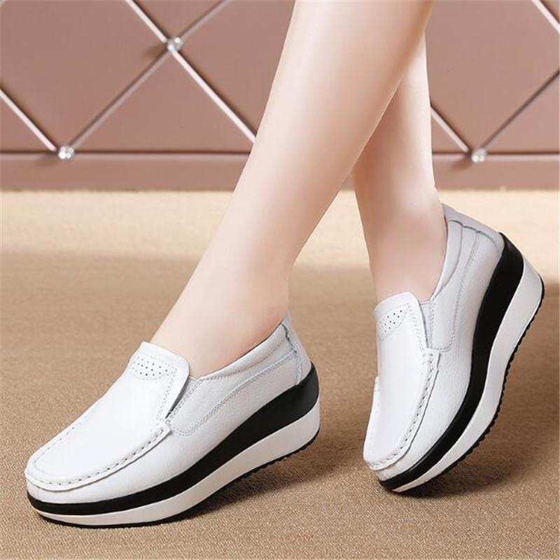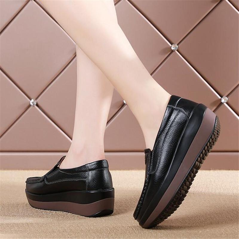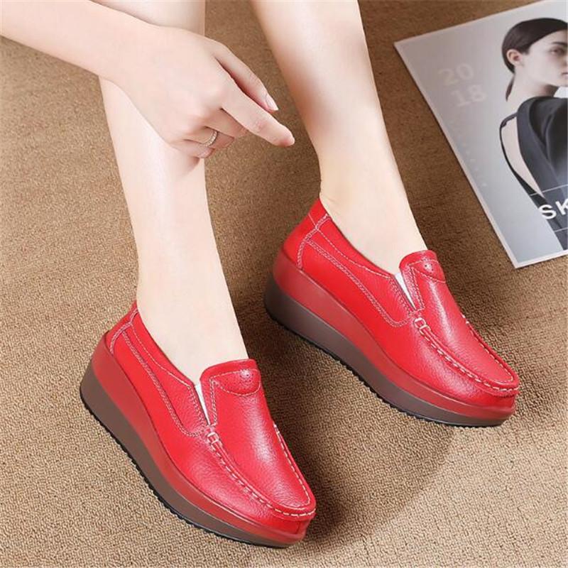 Модные женские лоферы-балетки на весну-осень, из натуральной кожи, мокасины слипоны, повседневные, с круглым носком, ручной работы, на платформе, на танкетке