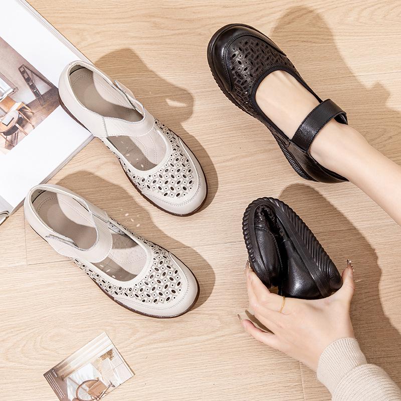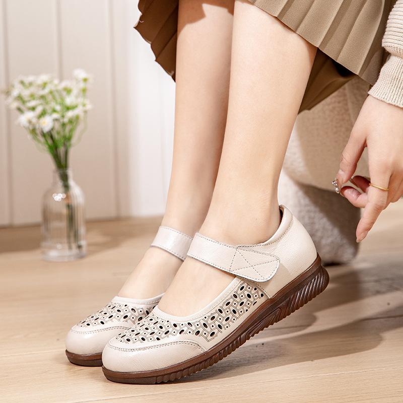 Мода Новая Женская Обувь Натуральная Кожа Женские Сандалии Удобные Мамины Балетки Сандалии для Ходьбы Перфорированные Пляжная Обувь Женская Обувь