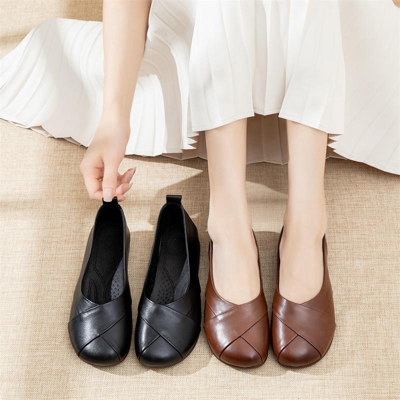 Мода 2024 Женская Повседневная Обувь с Круглым Носком на Низком Каблуке Натуральная Кожа Балетки Женская Обувь Элегантные Балетки на Мягкой Подошве — купить товар онлайн с бесплатной доставкой по всему миру!