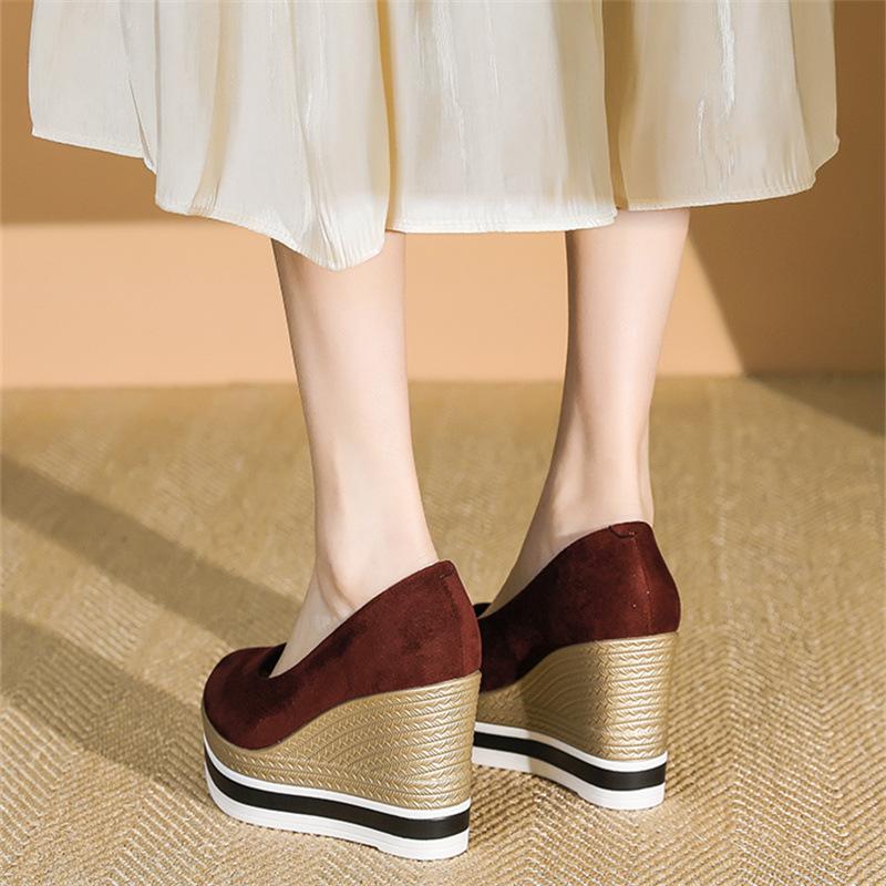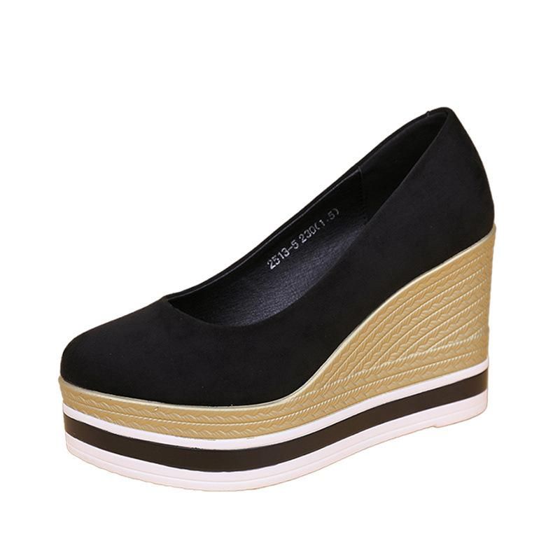 Весна и Осень новая удобная толстая подошва маффин неглубокий вырез одинарные туфли женские небольшое внутреннее увеличение высоты матовый высокий каблук