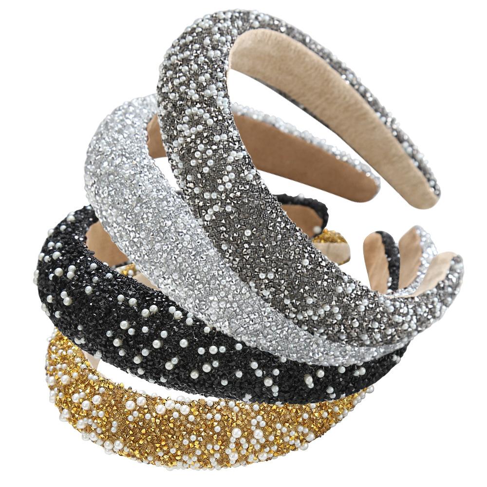 Женский обруч для волос с инкрустацией жемчугом, Ретро мода, Прессованная заколка для волос с широкими полями, ЖЕНСКИЕ ультра-блестящие, Роскошные аксессуары для волос