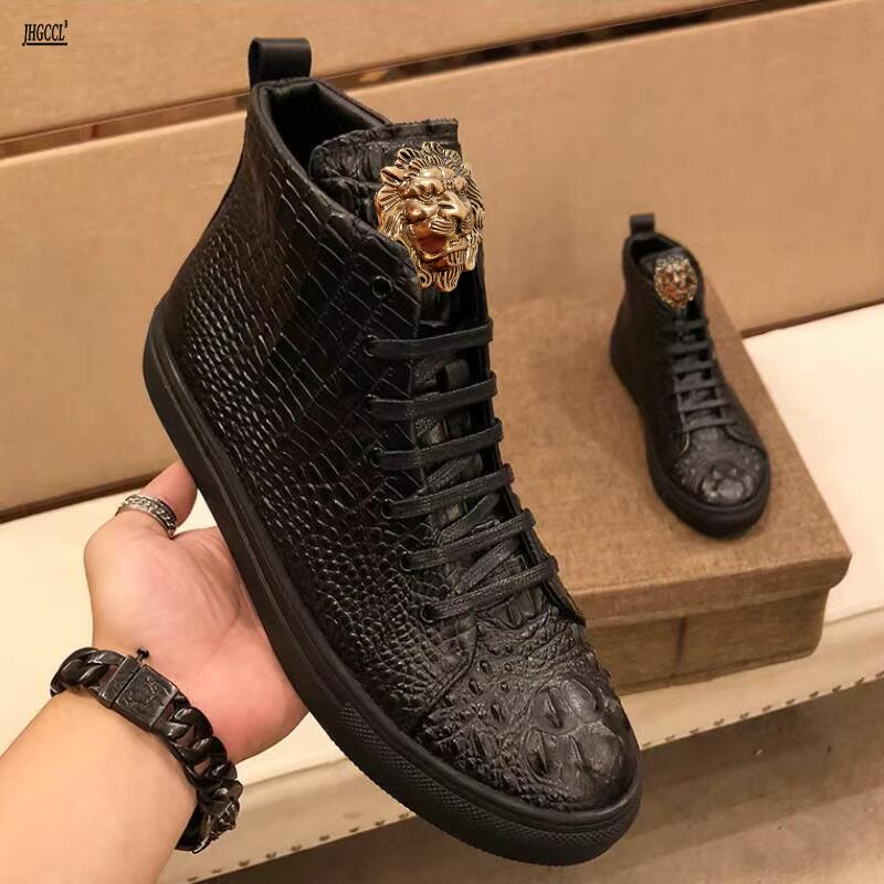 Модные кожаные высокие кроссовки для мужчин, роскошный стиль, узор под крокодила, премиальная повседневная обувь, утепленные для тепла, мягкая подошва A1 — купить товар онлайн с бесплатной доставкой по всему миру!