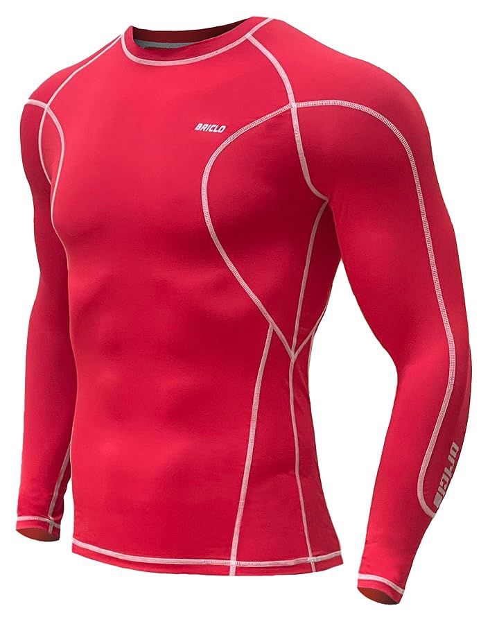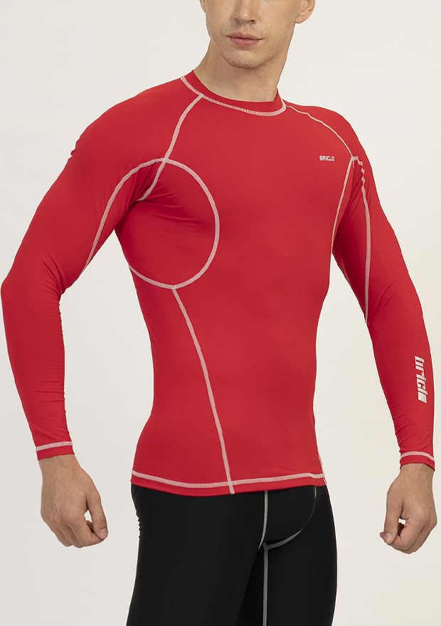Компрессионная футболка с длинным рукавом Briclo для весны и лета, компрессионная футболка Power Stretch с защитой от УФ-лучей для и, компрессионная спортивная база мужская [Эластичная,