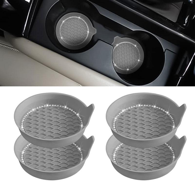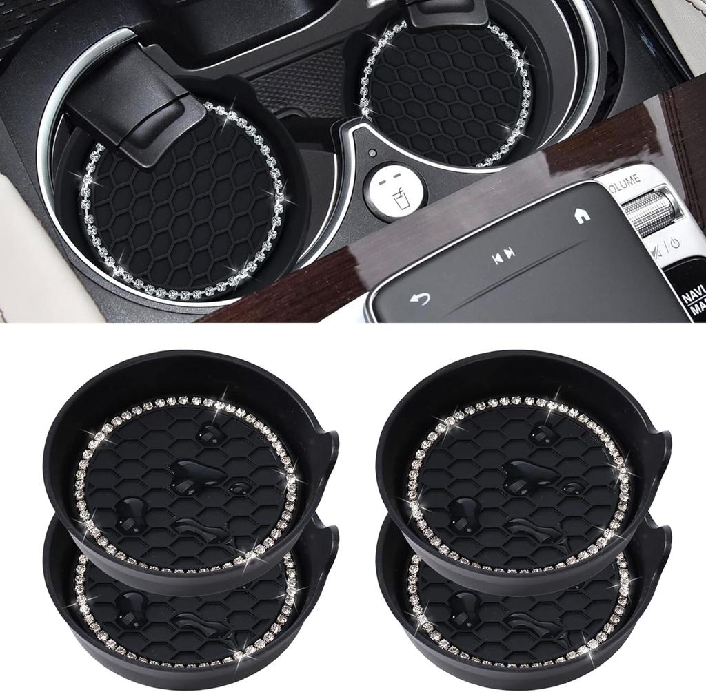 2/4pcs Car Cup Holder Coaster Silicone Cup Holder With Bling Crystal Rhinestone Insert Non-Slip Cup Holders Silent Cup Pad