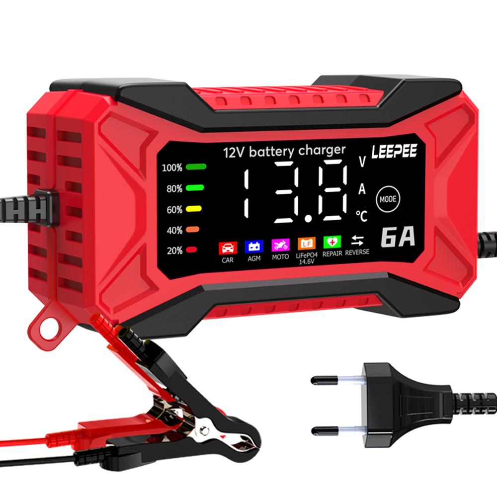 Цифровой ЖК-дисплей 2025 Внедорожник Мотоцикл Грузовик Обнаружение напряжения температуры Интеллектуальное импульсное восстановление Зарядное устройство для автомобильного аккумулятора 12 В 6 А