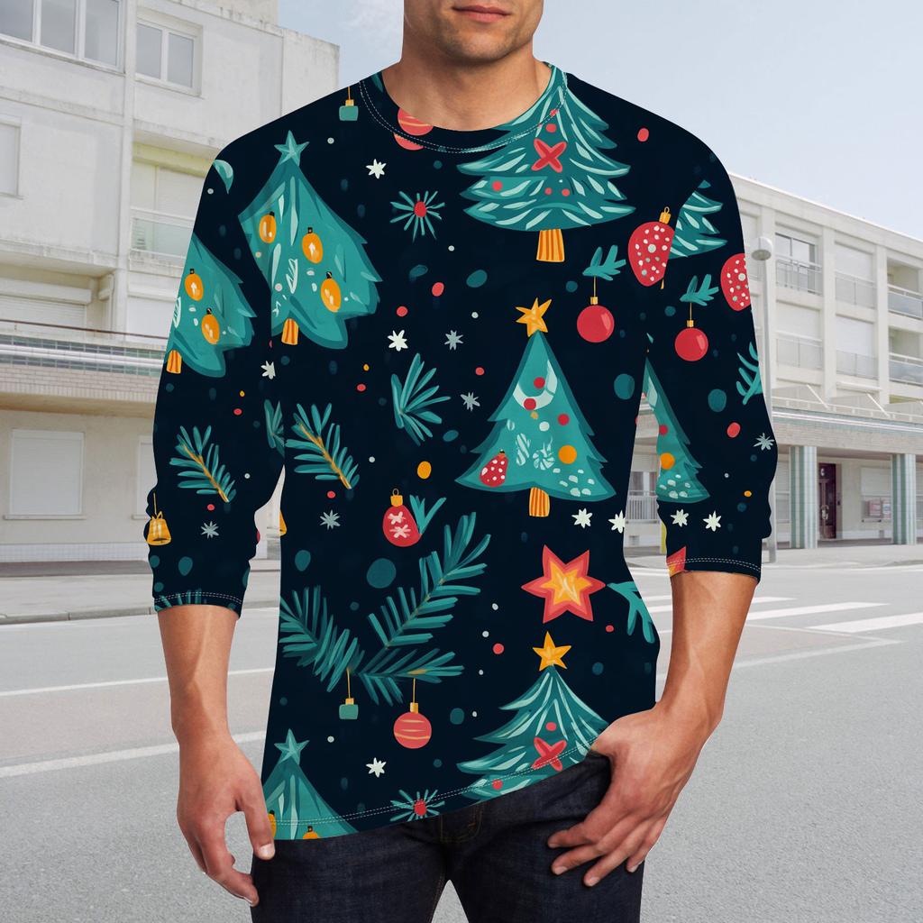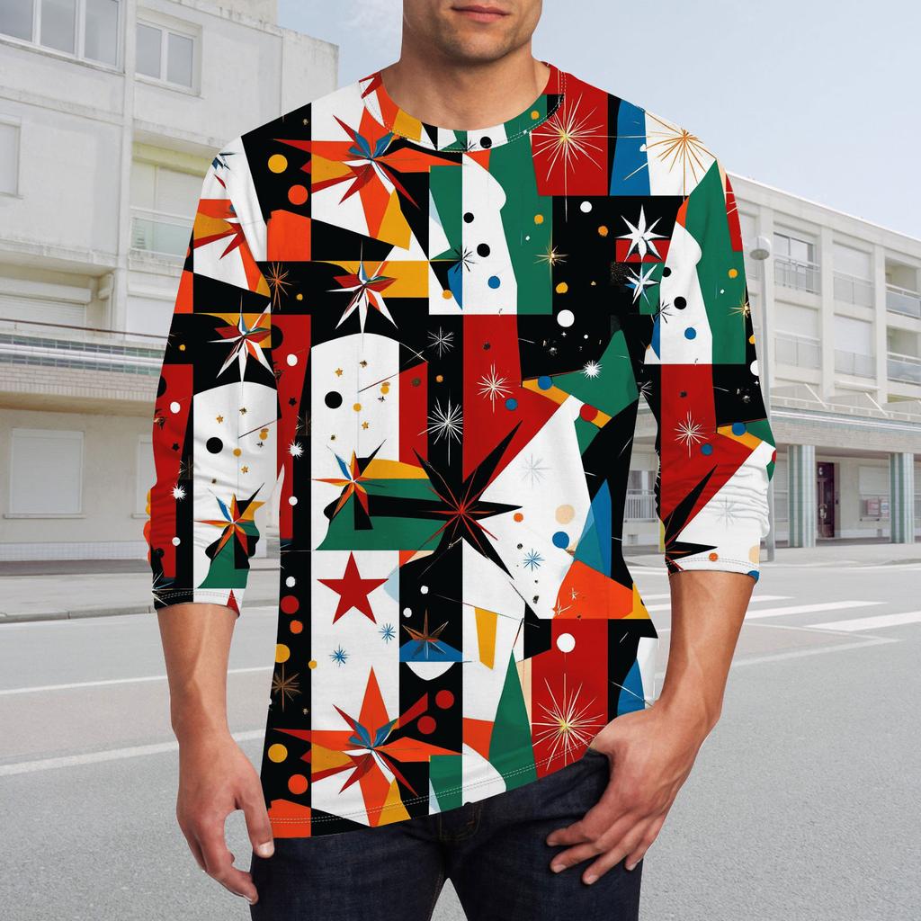 Муж. Футболка Круглый вырез Одежда Одежда На открытом воздухе Длинный рукав С принтом Модельер Винтаж