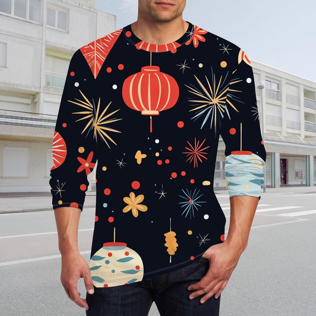 Муж. Футболка Круглый вырез Одежда Одежда На открытом воздухе Длинный рукав С принтом Модельер Винтаж