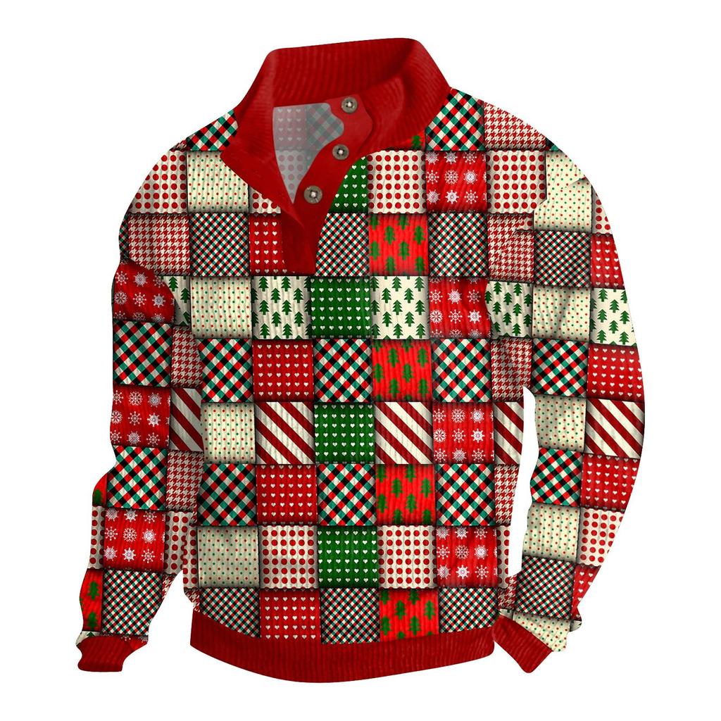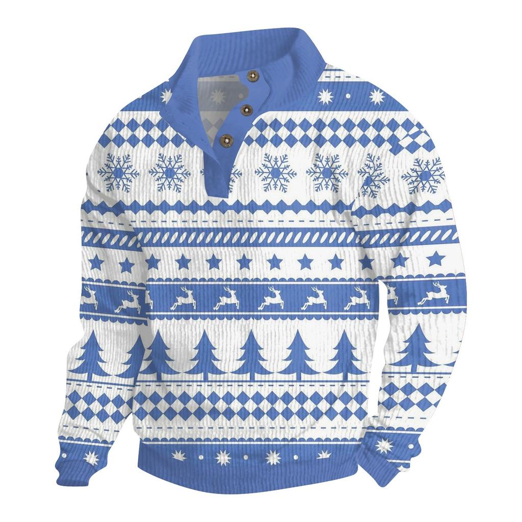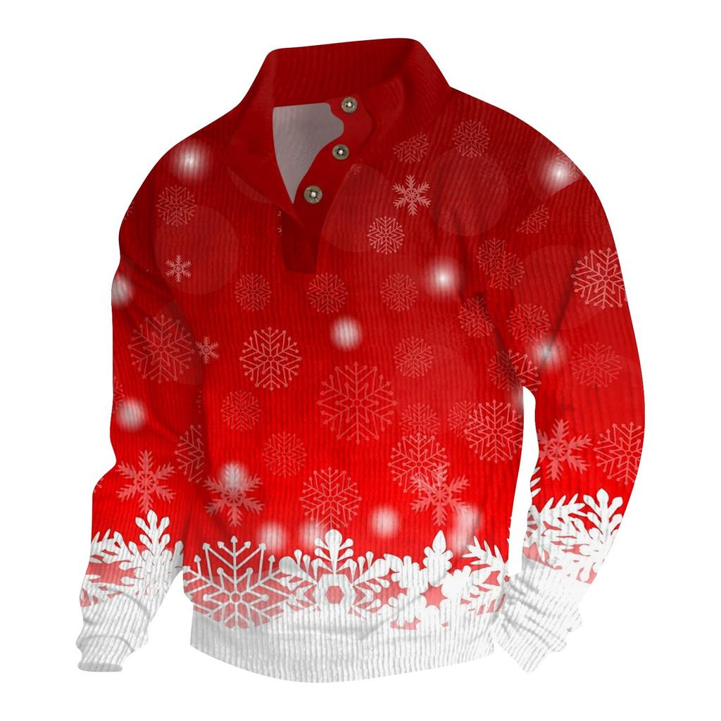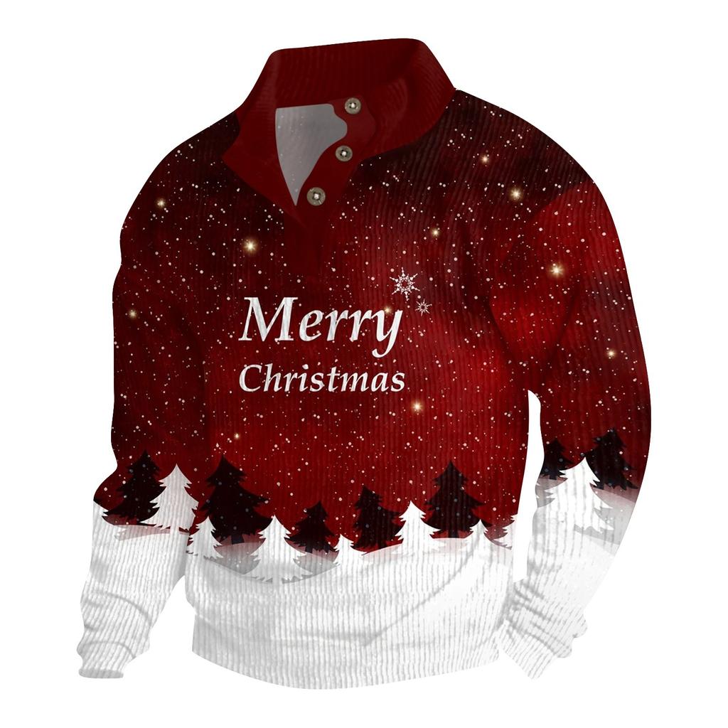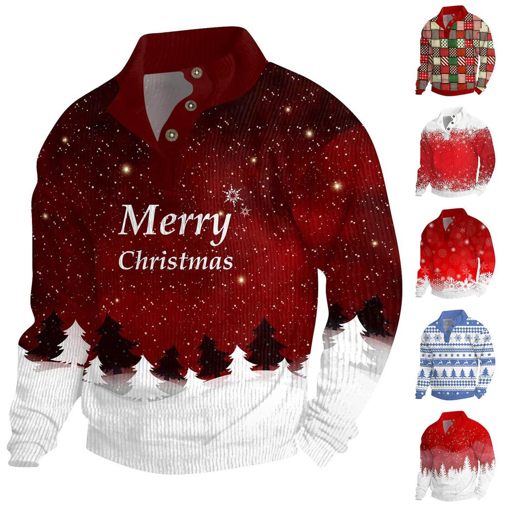 Мужская рождественская хлопковая рубашка-пуловер с длинным рукавом для активного отдыха, винтажная вельветовая рубашка с воротником-стойкой и пуговицами, повседневная толстовка с рождественским принтом