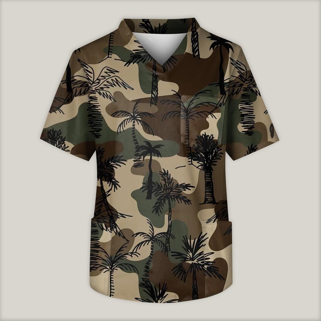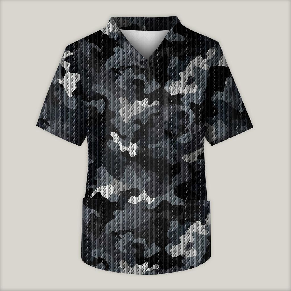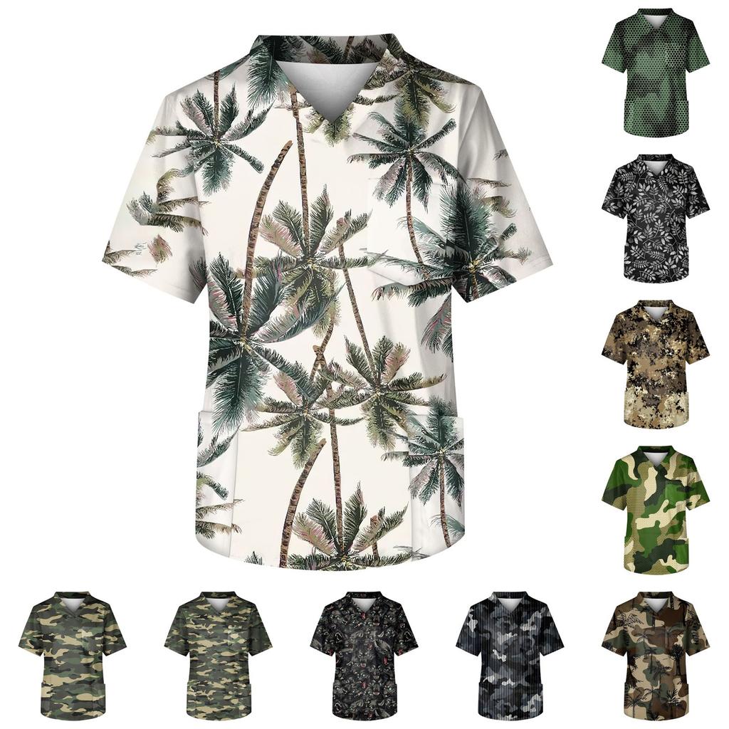 Мужская рабочая блузка с короткими рукавами и v-образным вырезом с принтом, топ с нагрудным карманом