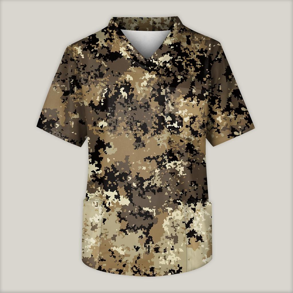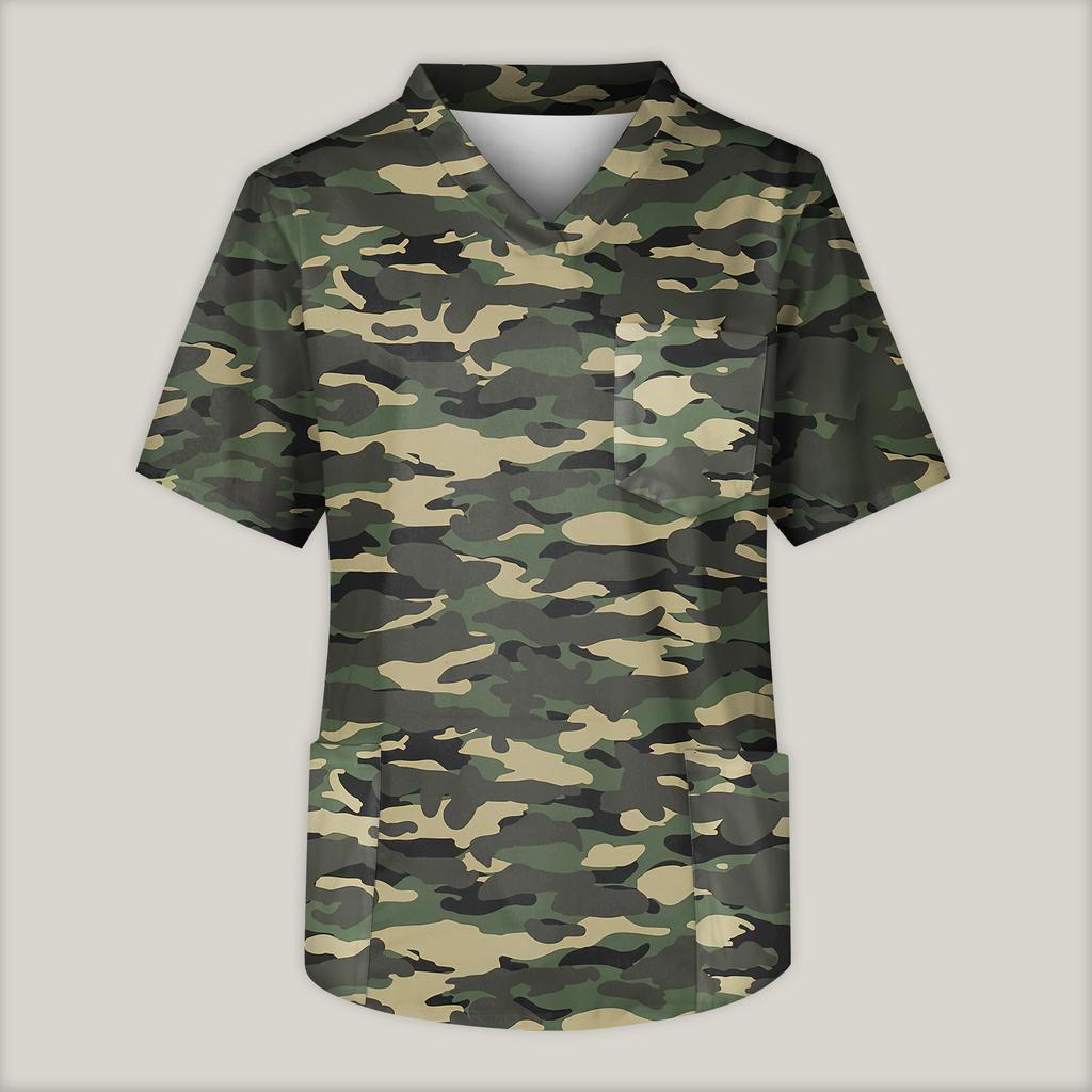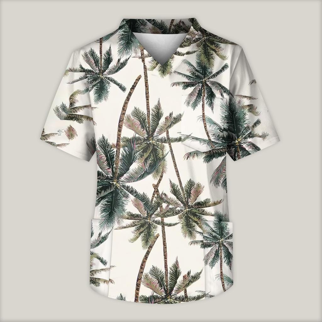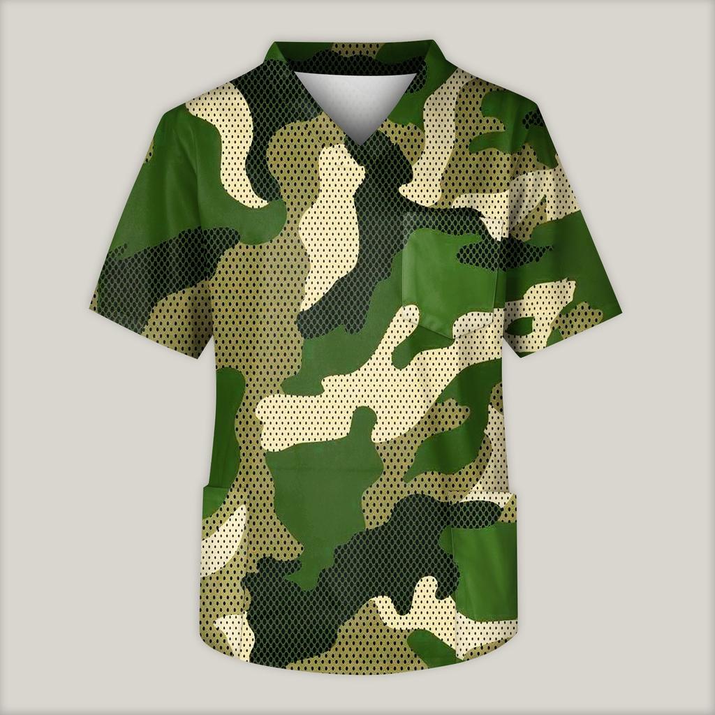 Мужская рабочая блузка с короткими рукавами и v-образным вырезом с принтом, топ с нагрудным карманом