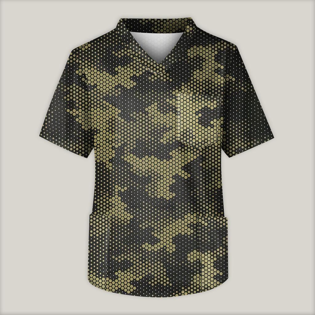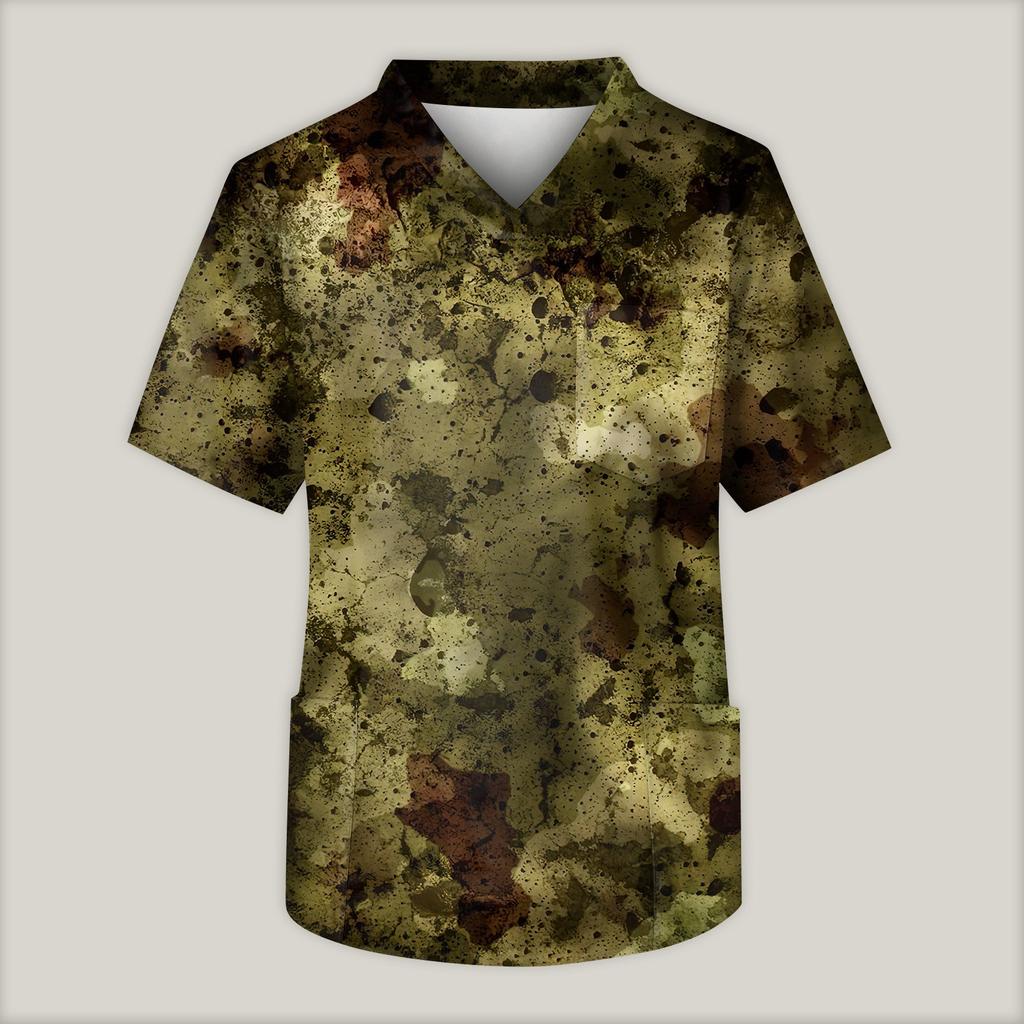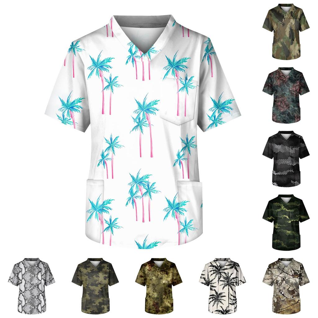 Мужская рабочая блузка с короткими рукавами и v-образным вырезом с принтом, топ с нагрудным карманом