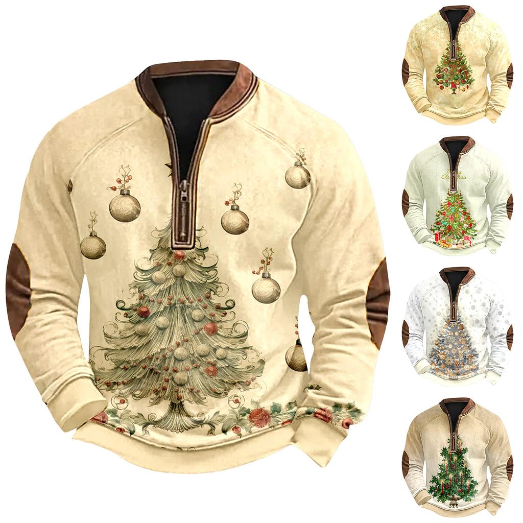 Мужская рождественская ретро-повседневная толстовка на молнии