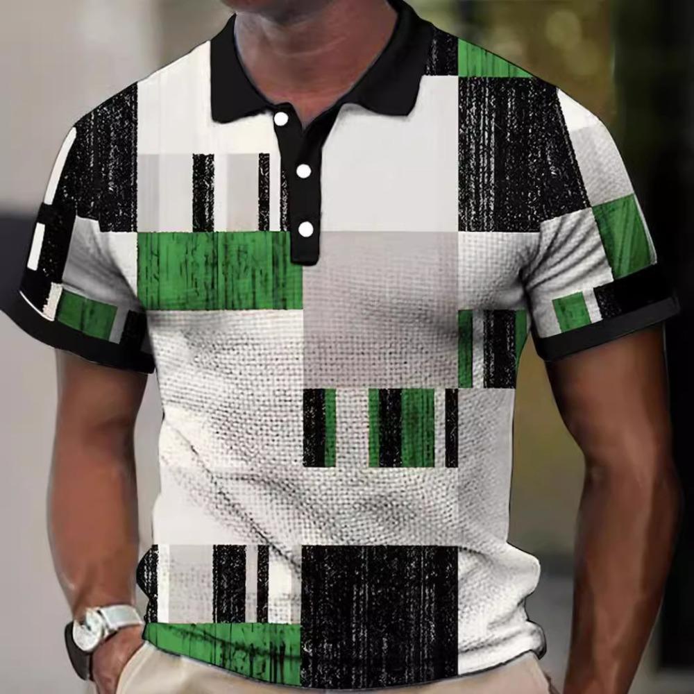 Модная мужская повседневная рубашка-поло с блочной вставкой и 3D-цифровой печатью