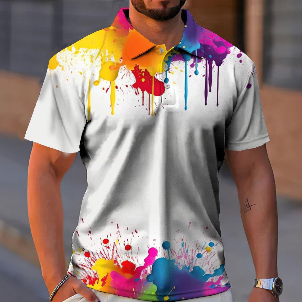 Мужская повседневная рубашка поло с красочным граффити, 3D цифровой печатью
