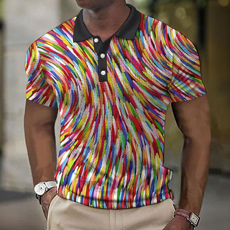Мужская повседневная рубашка поло с красочным и небрежным линейным узором, 3D цифровая печать