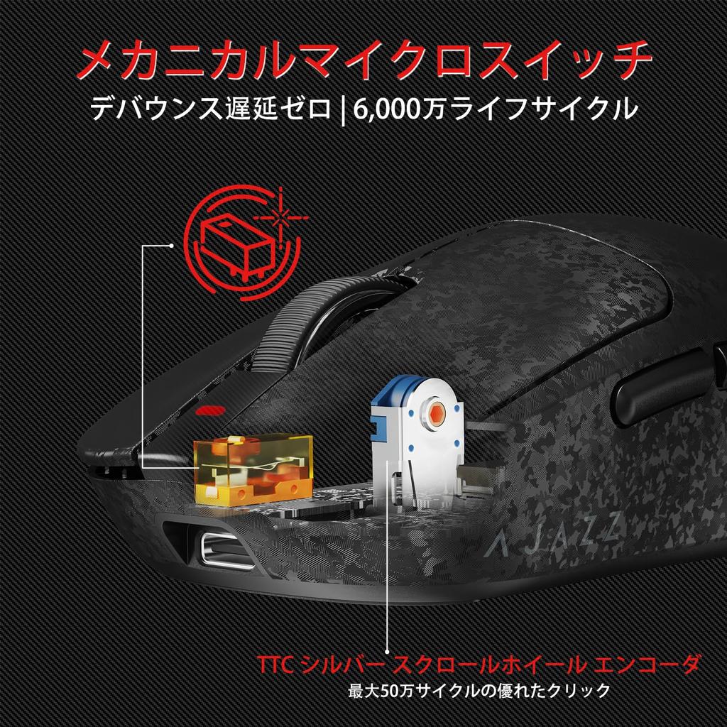 Игровая мышь AJAZZ AJ199 следующего поколения — это модель с высокими характеристиками, подходящая для широкого круга пользователей, от профессиональных геймеров до обычных пользователей.. Его сверхлегкий корпус из углеродного волокна весом 55 г ±3 г обеспечивает исключительную прочность и нескользящее покрытие.. Сенсор PixArt PAW3311 обеспечивает сверхточное отслеживание до 24 000 DPI, обеспечивая исключительное время отклика в любом игровом жанре.. Трехрежимное подключение (Проводное USB-C, беспроводное 2,4 ГГц, Bluetooth 5.0) позволяет подключаться одним касанием к различным устройствам, включая ПК, ноутбуки и планшеты. Большой аккумулятор емкостью 500 мАч обеспечивает стабильную работу во время длительных игровых сессий и работы. Переключатели TTC с ресурсом 60 миллионов нажатий и энкодер с ресурсом 500 000 нажатий обеспечивают стабильное ощущение. Эргономичный дизайн снижает усталость рук даже при длительном использовании.. Тефлоновые ножки обеспечивают плавное движение, гарантируя оптимальную производительность в любом игровом сценарии.. Эта высокопроизводительная мышь, совместимая как с Windows, так и с Mac, рекомендуется всем, от профессиональных геймеров до офисных работников.