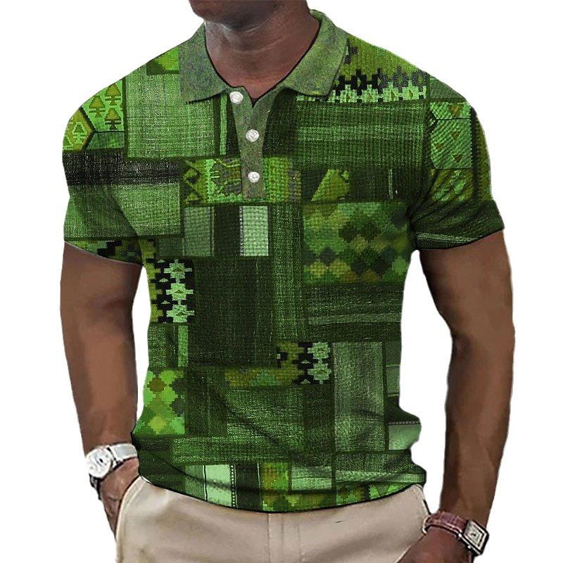 Мужская повседневная рубашка поло в стиле ретро, с разноцветными блоками и 3D цифровой печатью